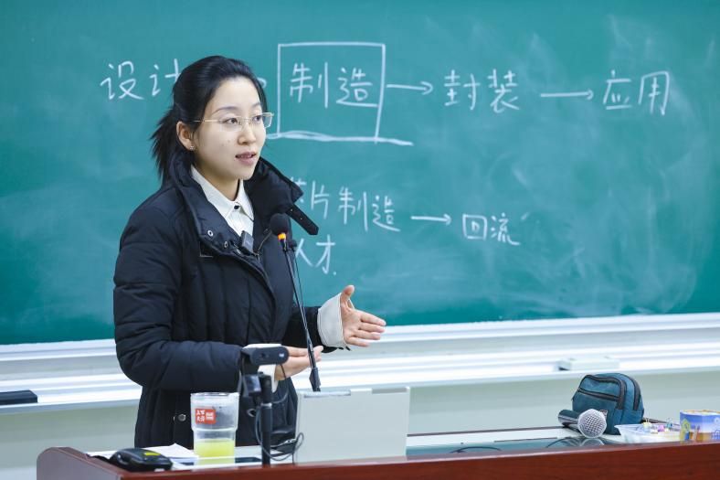 “从5nm到未来的1nm,芯片集成晶体管的密度如何实现25倍跃升?”任开琳老师以芯片制程为切入点,揭开集成电路制造的神秘面纱,诠释了“基础研究需要坐得住冷板凳”的科研精神。