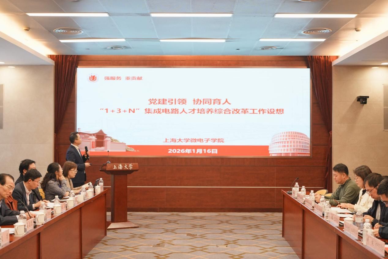 2026年1月16日下午,上海大学集成电路协同育人联盟成立仪式暨“1+3+N”集成电路人才培养综合改革沙龙在宝山校区乐乎新楼思源厅顺利举行。校党委书记吴坚勇出席活动并讲话,校党委副书记段勇,校党委常委、组织人事部常务副部长、组织处处长刘丽兰,上海市委党校原副校长朱亮高,及相关职能部门负责人、各学院党委负责人及特邀专家齐聚一堂,共同见证联盟成立,商讨集成电路人才培养改革计划。活动由微电子学院党委书记、嘉定校区管委会常务副主任秦凯丰主持。